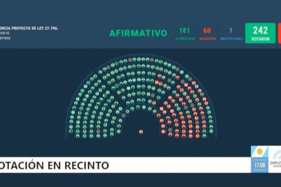 En el caso de la Emergencia Pediátrica, conocida popularmente como ley Garrahan, el apoyo de los diputados fue mayor: 181 votos a favor y en contra solo 60.