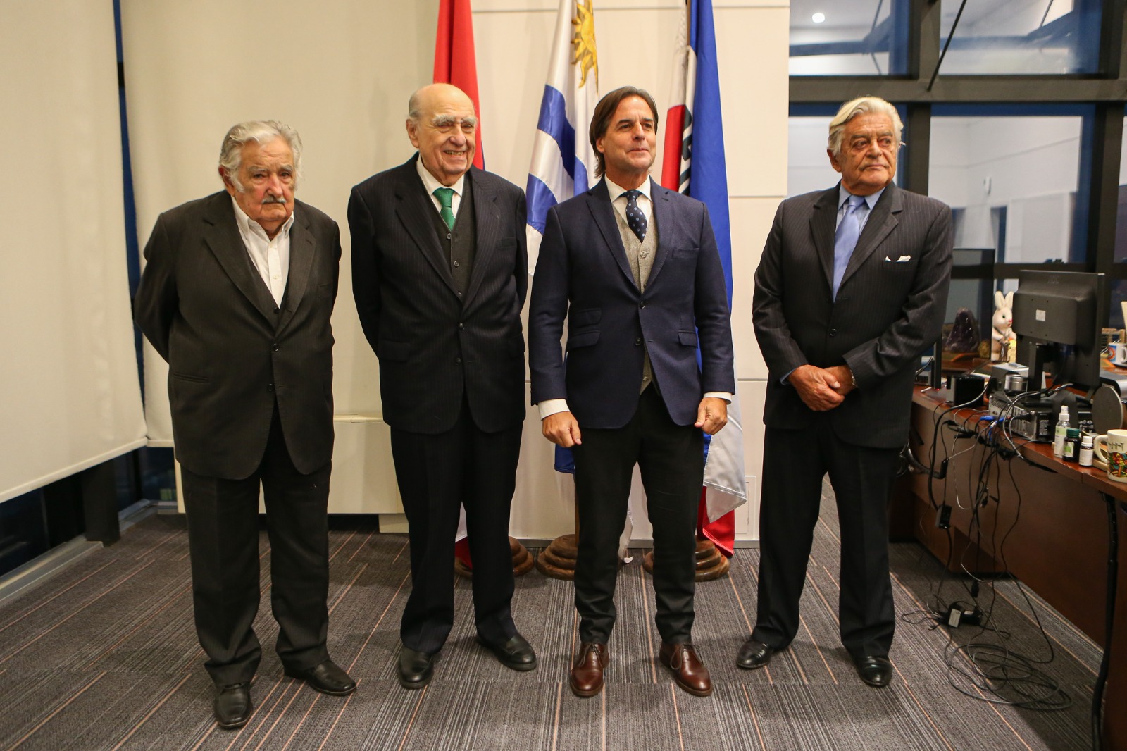 El actual mandatario, Luis Lacalle Pou, y sus predecesores Julio María Sanguinetti, José Mujica y Luis Alberto Lacalle Herrera defendieron la democracia en la Torre Ejecutiva, sede del Gobierno de Montevideo
