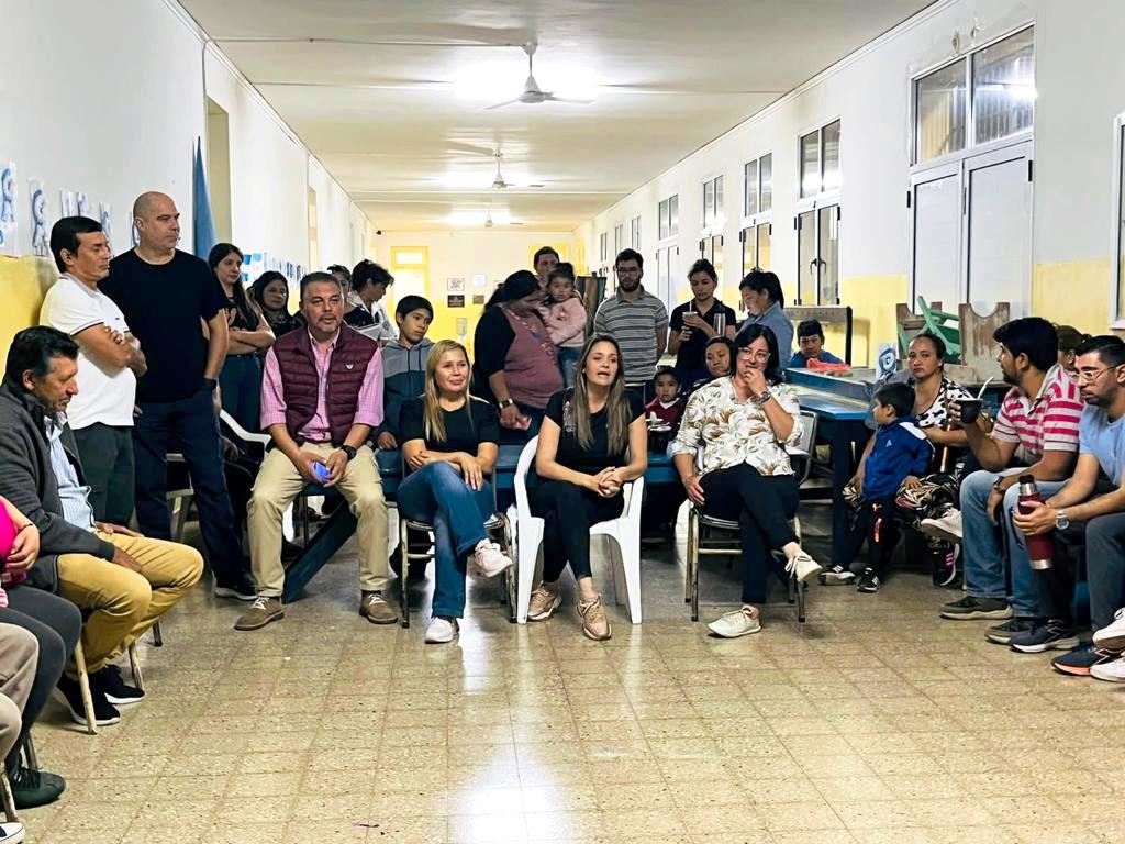 La intendente Noelia Bazzi encabezó la reunión de vecinos de Lomas Este realizada en la Escuela N°412 donde los coordinadores abordaron temas de interés general, entre ellos el mejoramiento de los caminos vecinales y el inminente lanzamiento del programa de Presupuesto Participativo 2023.