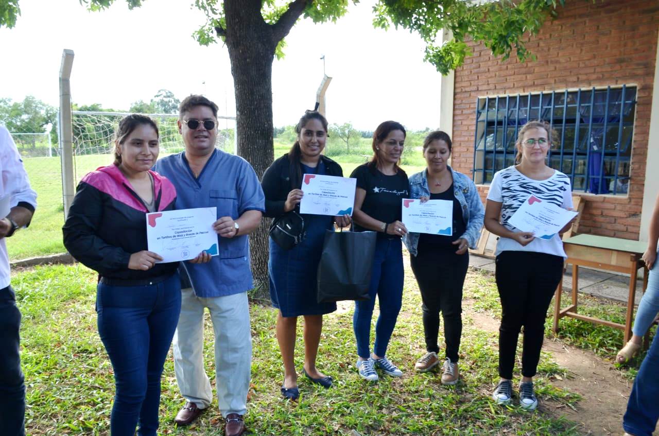 No obstante la entrega de certificados de asistencia a la mencionada capacitación, los funcionarios aprovecharon para tomar contacto con los vecinos de la comunidad rural distante unos 5 kilómetros al norte de Bella Vista sobre Ruta Provincial 27.