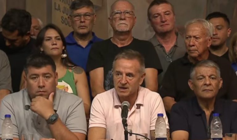 El discurso más duro estuvo a cargo de Jerónimo, que señaló: “No vamos a parar hasta que cambie el rumbo político y económico de nuestro país”. Y agregó: “No estamos dispuestos, porque así lo marca nuestra tradición y nuestra historia, a entregarnos ni a cerrar la puerta de las organizaciones sindicales”.