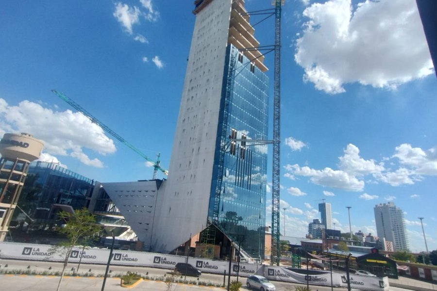 El flamante edificio de 20 pisos aún está en construcción, pero la obra está avanzada casi en un 80%, en la idea original de La Unidad, dicha torre fue pensada justamente para albergar oficinas públicas y privadas.