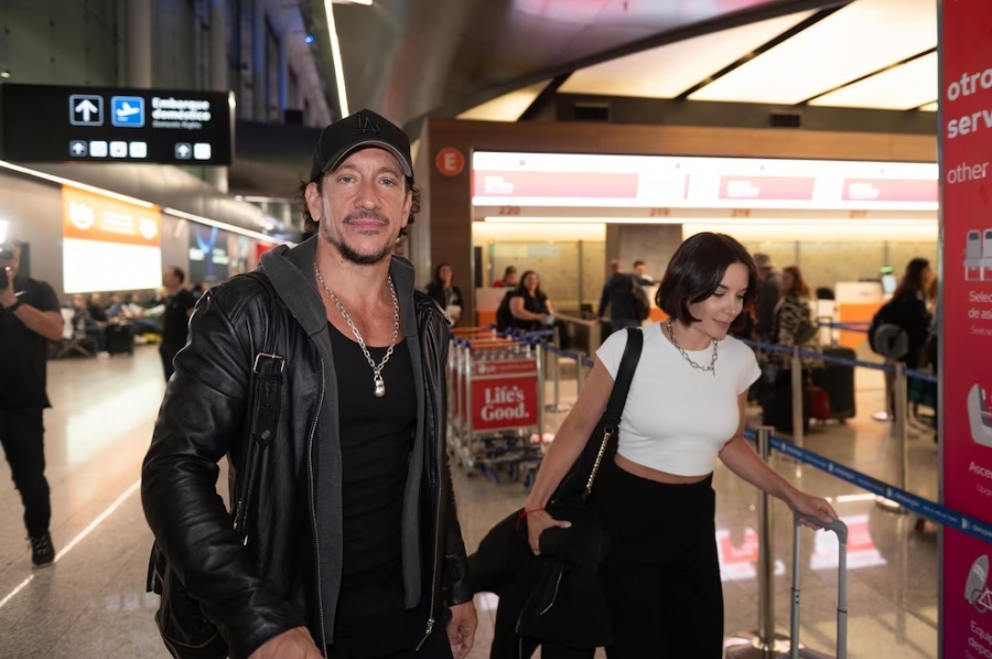 El actor optó por una gorra con visera, un collar de plata visible sobre una remera negra y un estilo relajado que marca su identidad cotidiana, mientras que la actriz eligió un pantalón cómodo de color negro combinado con un top blanco ajustado, el cual dejaba su abdomen al descubierto y sumaba un aire fresco propio del inicio del nuevo romance. Ambos, sonrientes y distendidos, se mostraron de excelente humor ante los fotógrafos presentes, posando sin prisa y dejando entrever la complicidad de compartir su primer viaje internacional como pareja.